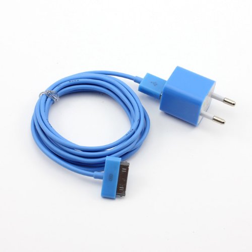 Huayang 2en1 EU Plug AC Chargeur + 2m Data Sync cable chargeur pour iPod iPhone 4S(blue)
